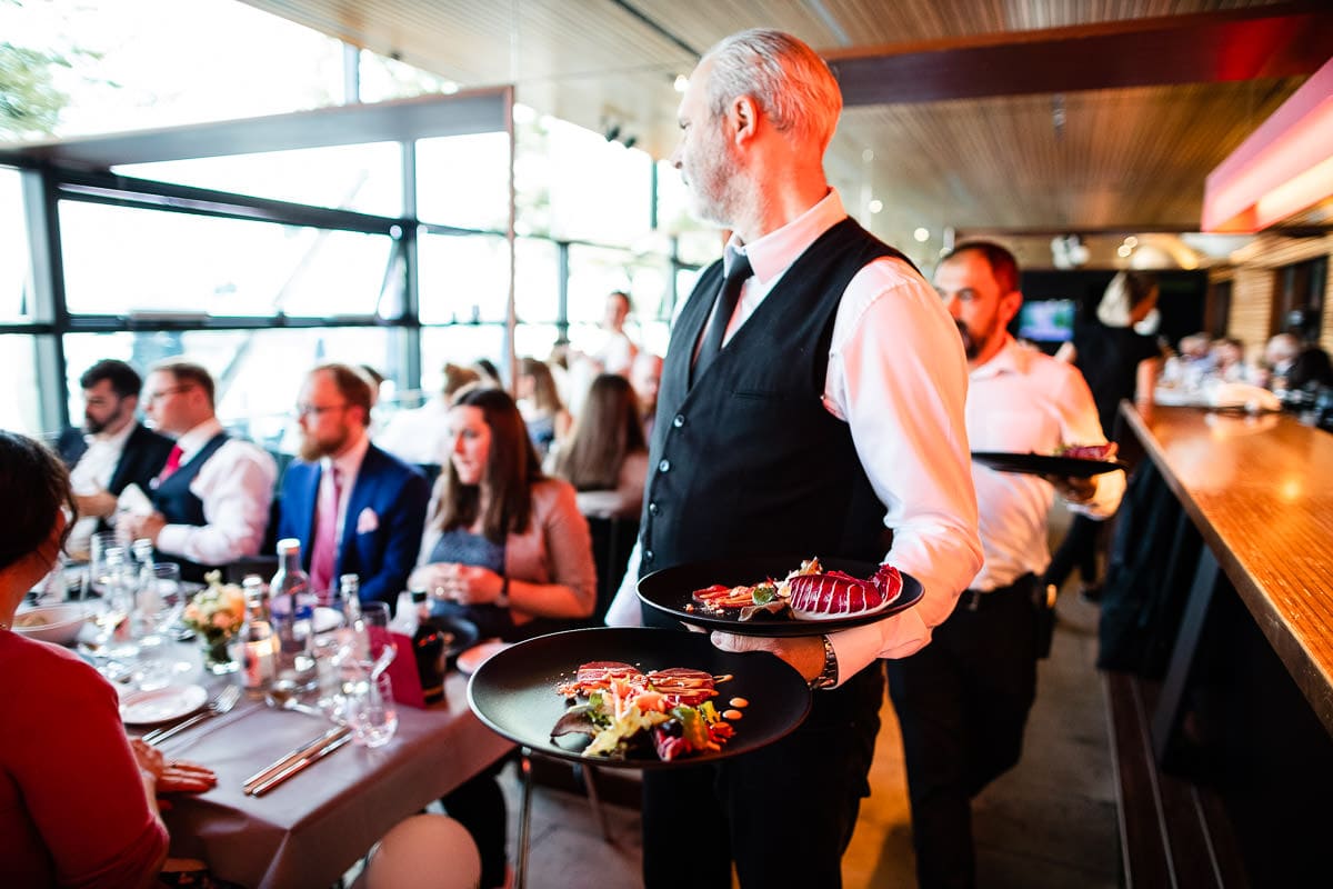 The bridal couple took their guests on a culinary journey of discovery. The two of them share a passion for exploring foreign countries and unusual dishes, which could be found in many different variations on the international menu. So not only the elaborately decorated wedding cake was a real eye-catcher, but also the wedding menu, which I was also allowed to help prepare behind the scenes.