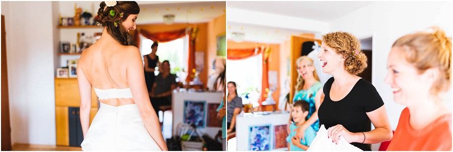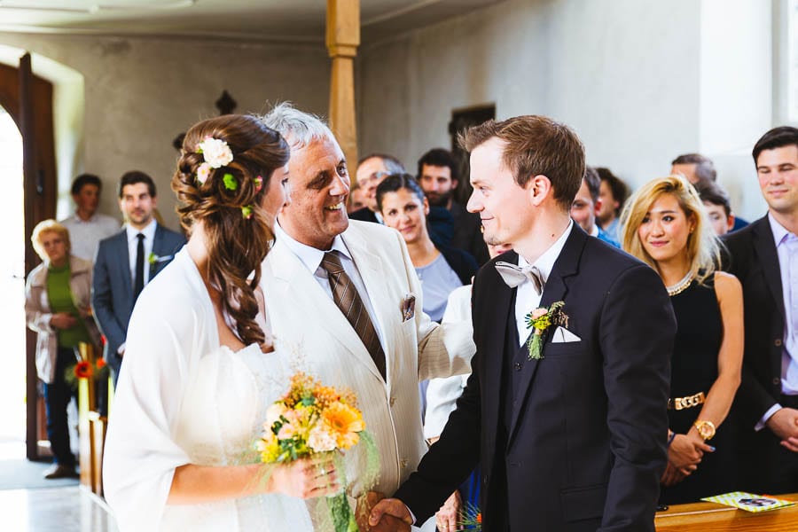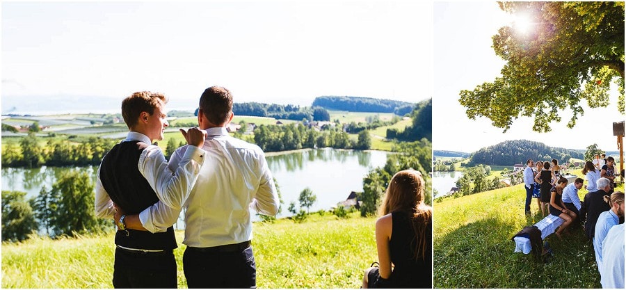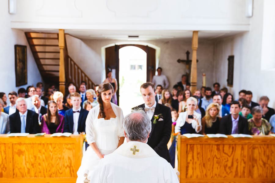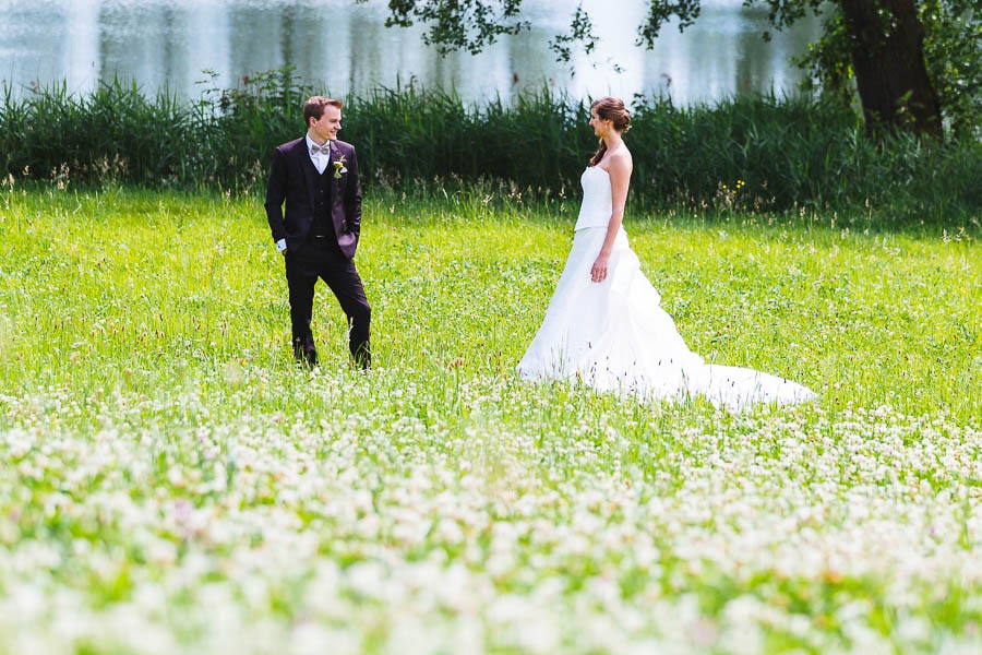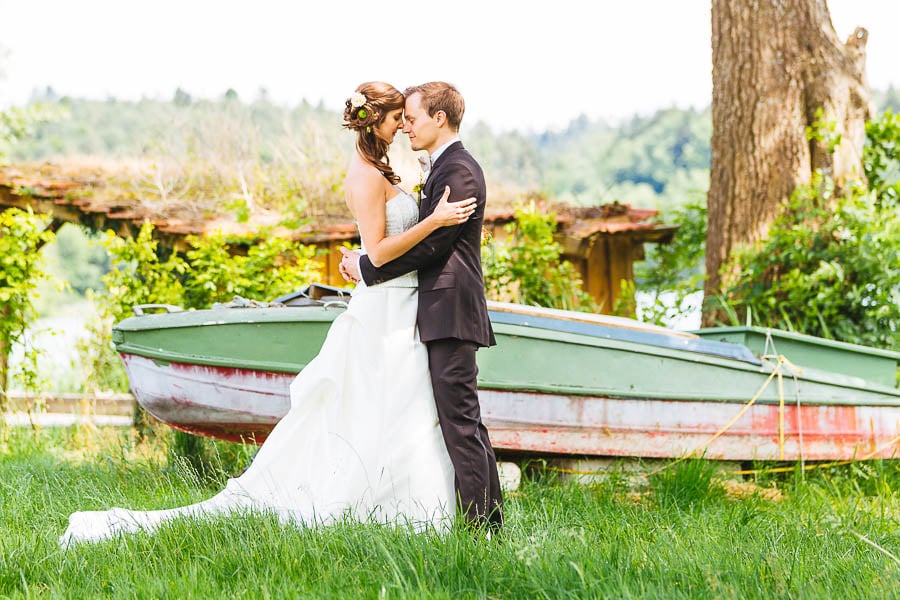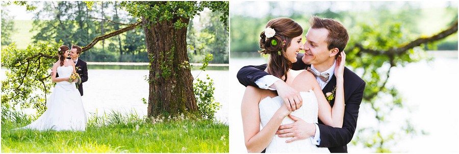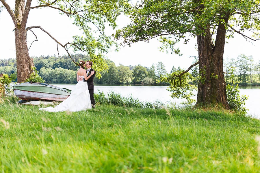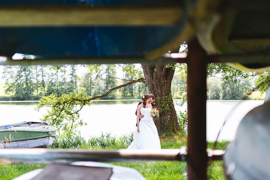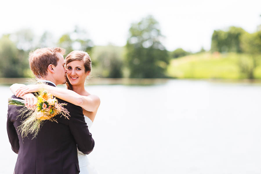 Der Tag für mich als Hochzeitsfotograf begann bei Carmens Elternhaus um die Vorbereitungen festzuhalten. Nach dem „Getting Ready“ verabredeten wir mit Johannes einen Treffpunkt wo die beiden sich das erste mal sehen sollten. Der „First Look“ der beiden war ein sehr schöner Moment – für die beiden sicherlich nicht weniger schön wie für mich als Fotograf. Nach dem die ersten Bilder der beiden im Kasten waren, fuhren wir gemeinsam ins Hinterland von Kressbronn wo sich ein echtes Juwel befindet: Der Schleinsee, direkt an dem idyllisch gelegenen See befindet sich ein großer Bauernhof und s`Hofcafe. Die sehr Stimmungsvolle Umgebung nutzen wir um weitere Bilder von Carmen und Johannes zu erstellen.