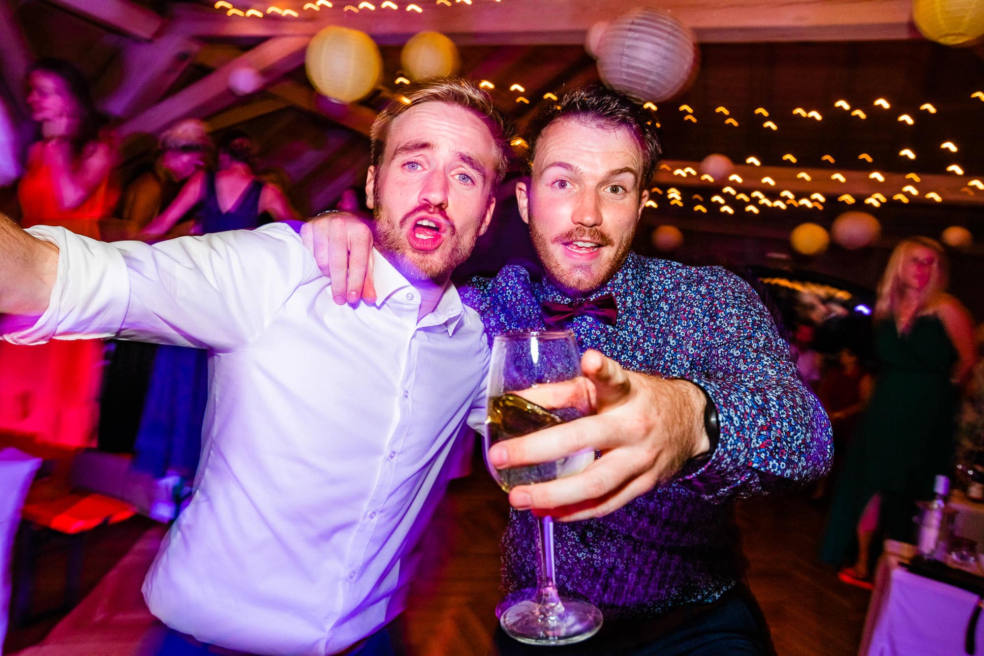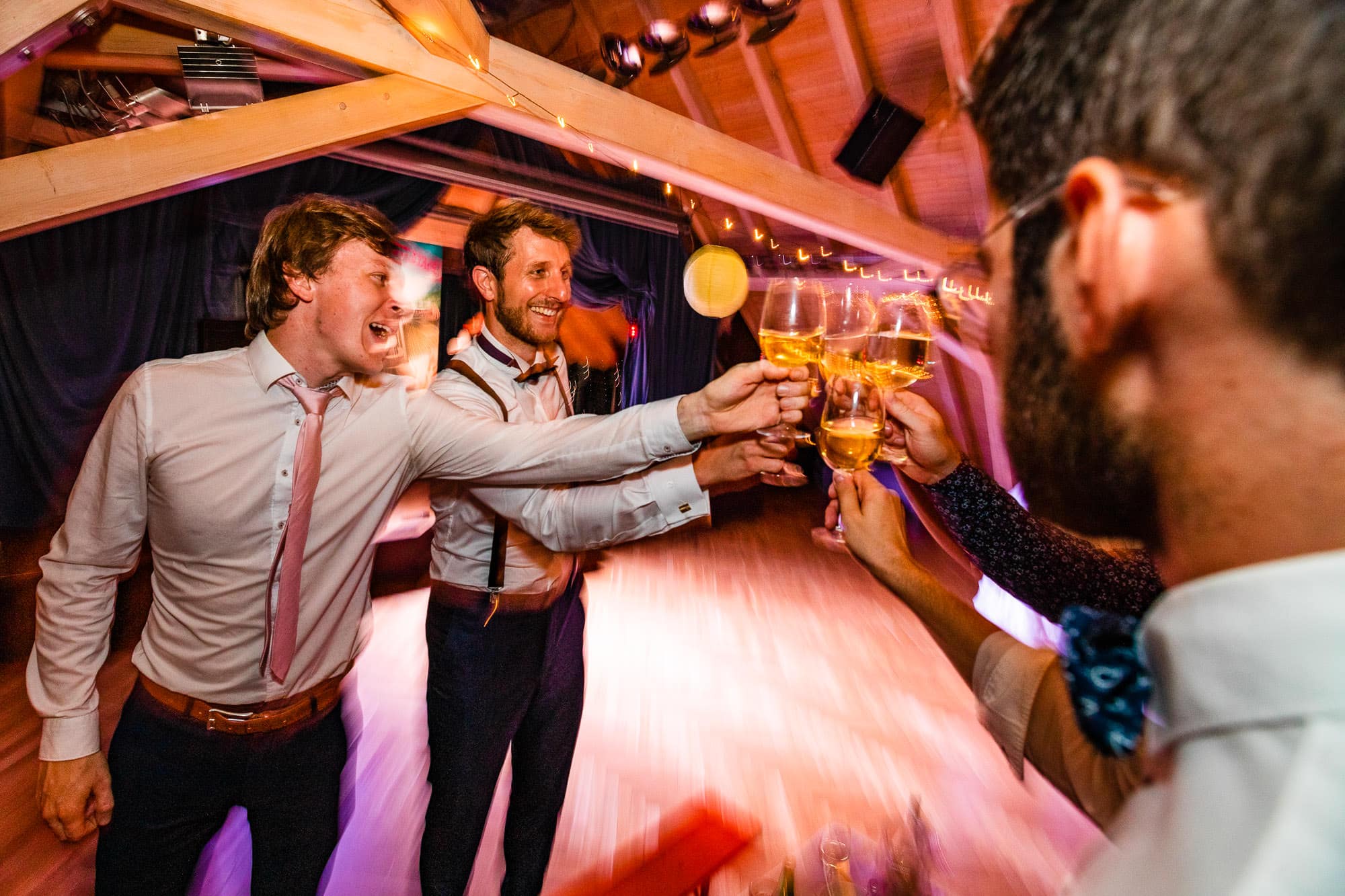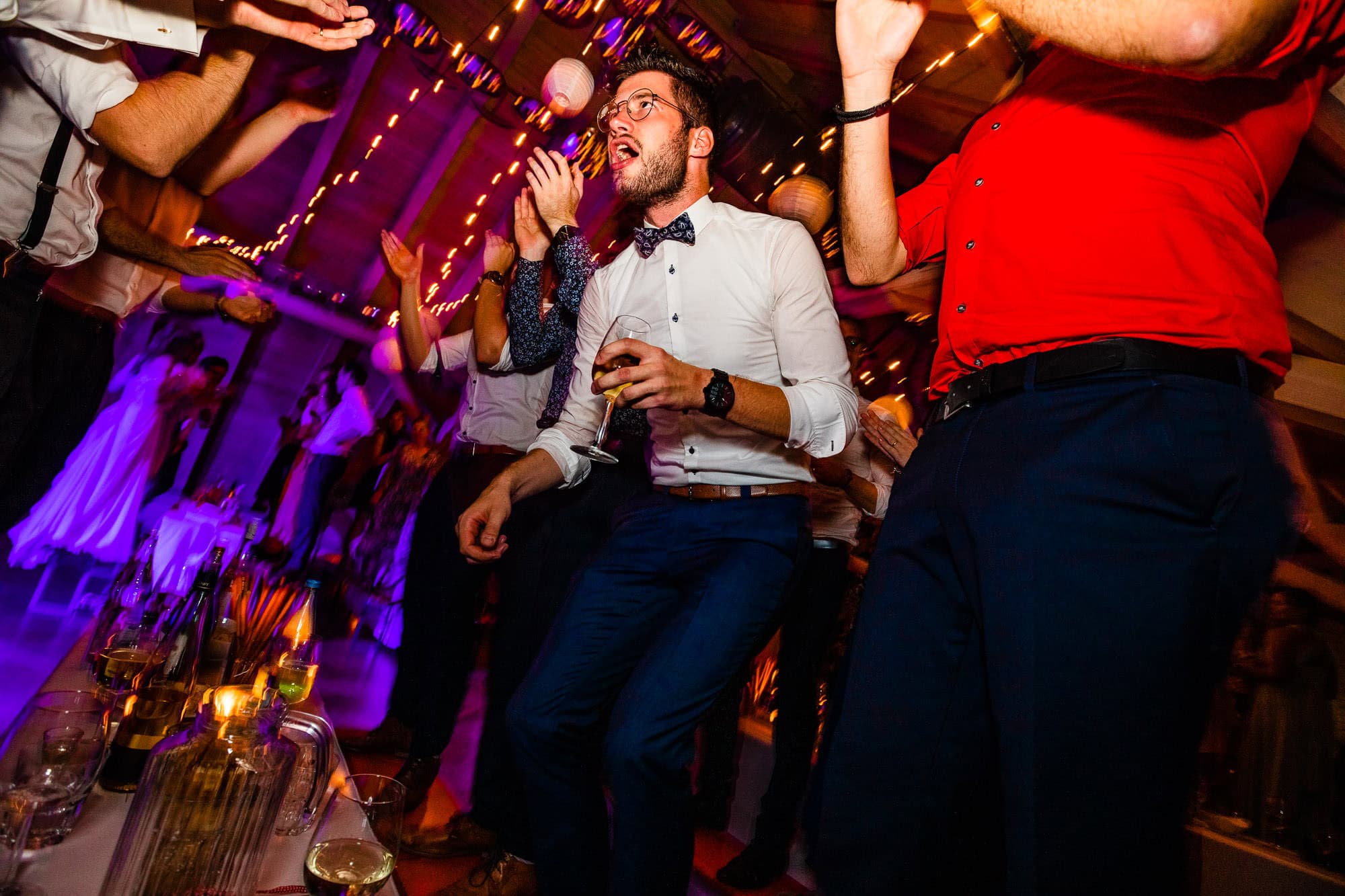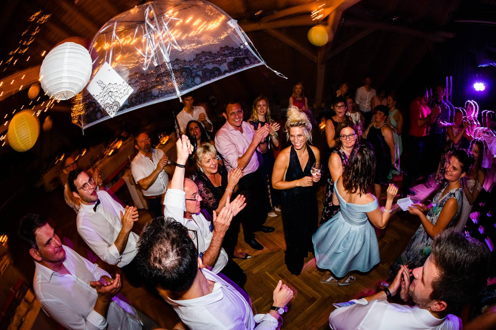 Kurze Zeit später ging es einen Stock höher, dort wartete bereits die Band „Echt Tirol“ auf seine Partygäste. Die Jungs wissen genau, wie sie die Stimmung ihrer Gäste von Null auf 100 aufheizen. Sie drehten direkt auf und wieder war die Stimmung im vollen Gange. Die stimmungsvolle Musik untermalte das Toben auf den Tischen und Bänken. Keiner der Gäste stand still – es ging auch nicht :) Die Musik war super gewählt und hat perfekt zum Ambiente gepasst. Die Feier nahm ihren Lauf. Etwas später luden Nadine und Stefan in das untere Stockwerk ein. Die Gäste stellten sich um das Brautpaar herum, während die Musik aus den Boxen ertönte und Nadine und Stefan ihren Hochzeitstanz vollzogen. Nach und nach zog das Brautpaar ihre Liebsten mit auf die Tanzfläche. Sie feierten weit in morgendlichen Stunden.