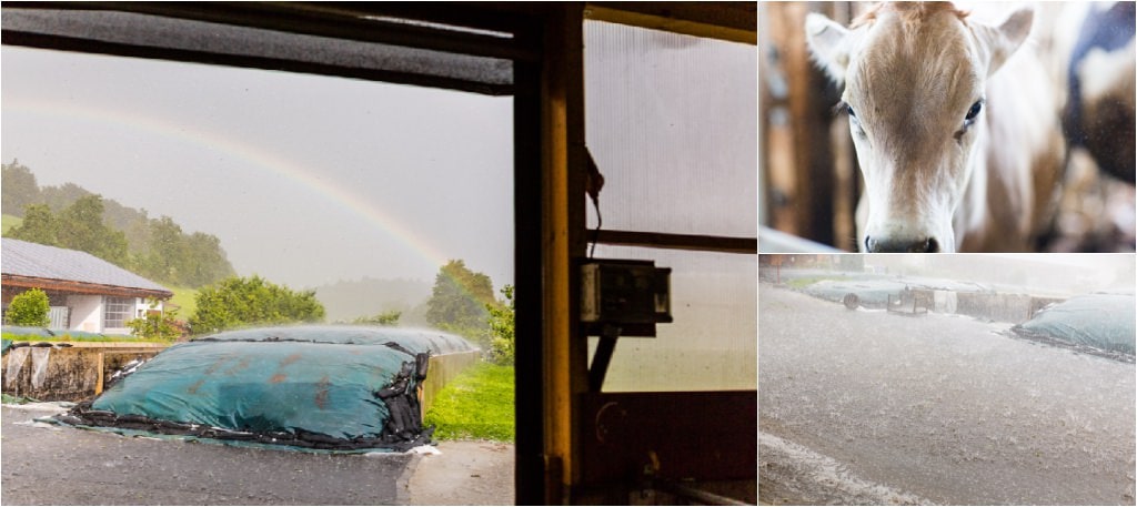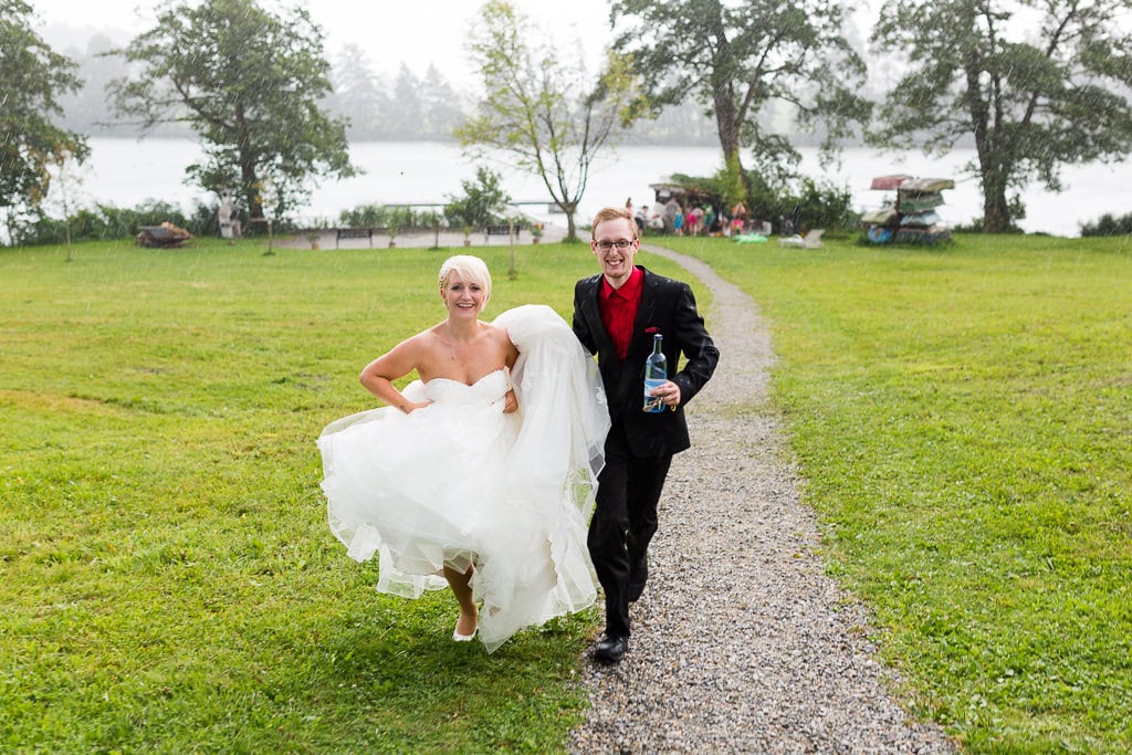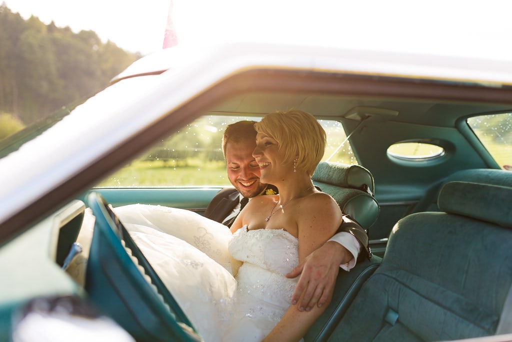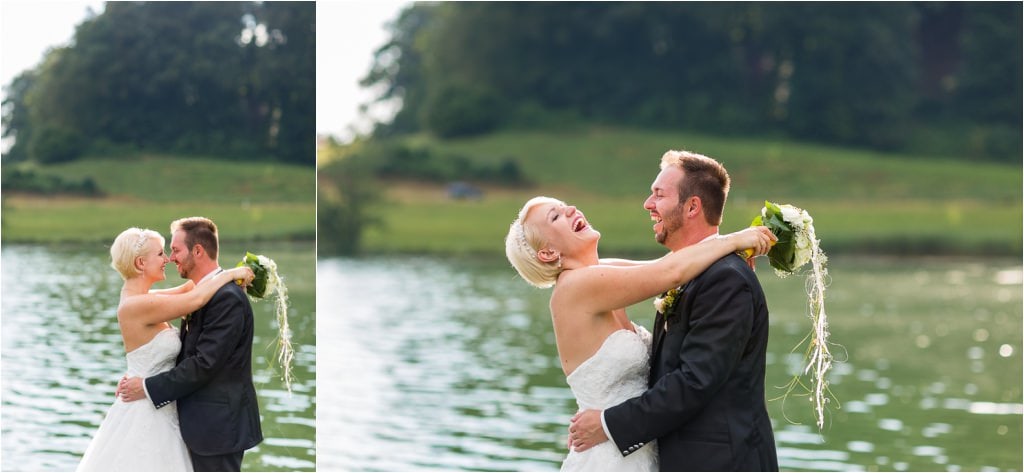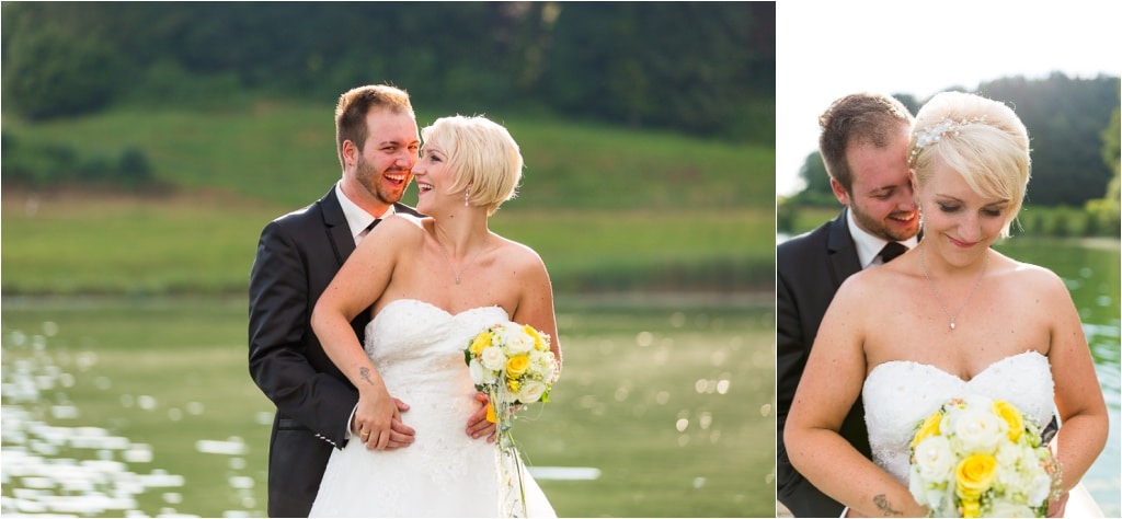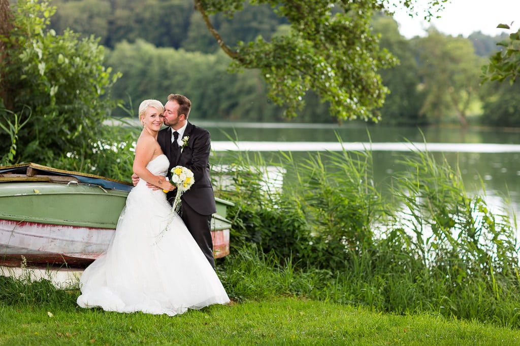 Auf dem Weg zur Feierlocation führte uns der Weg an den malerisch gelegenen Schleinsee. Wir hatten das Paarshooting gerade beendet, als ein heftiger Platzregen einsetzte und wir Unterschlupf in der nahe gelegenen Scheune suchen mussten.