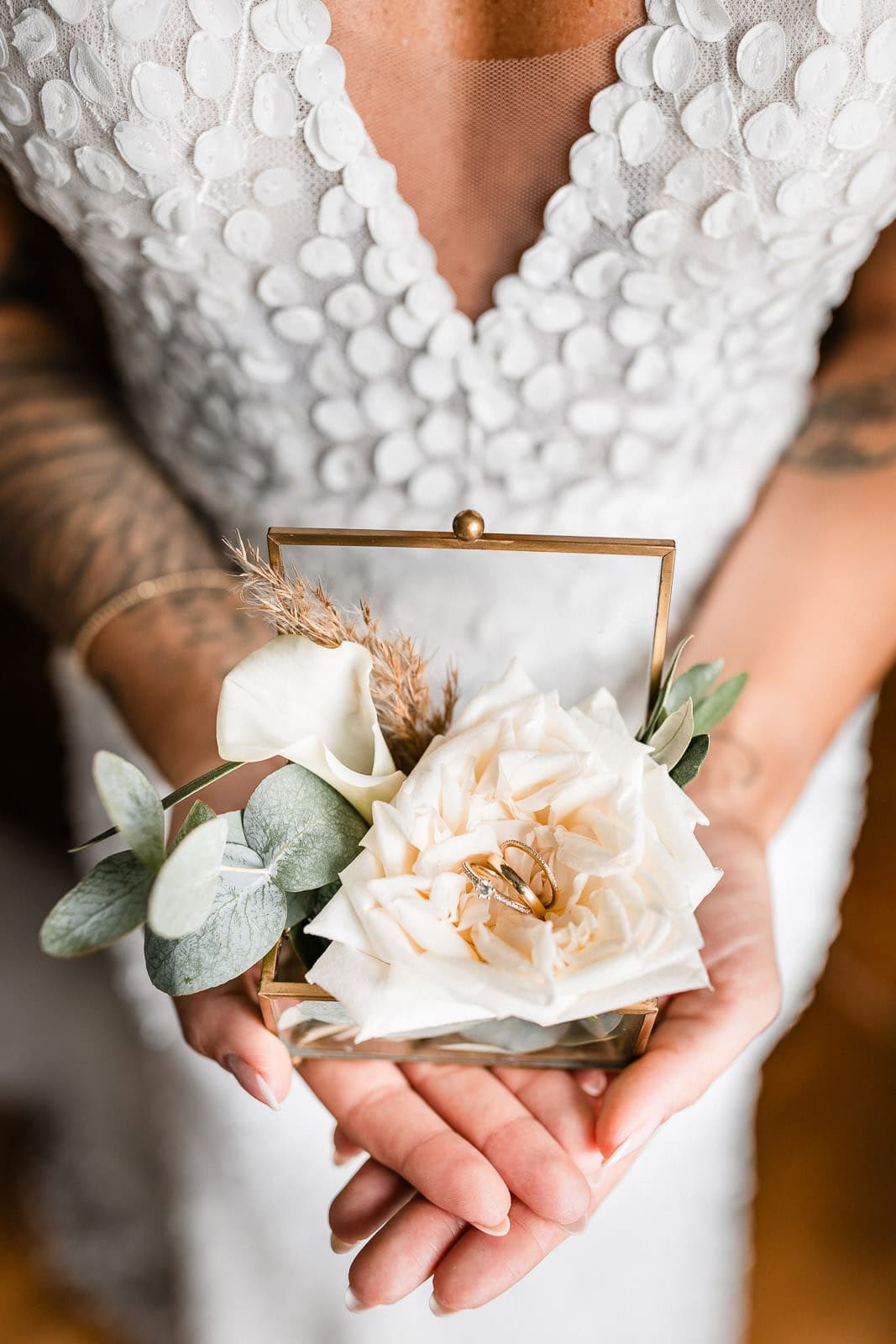 Marie startete ihren Hochzeitstag gemeinsam mit ihren engsten Freundinnen. Während Beautyglow by Teresa sich um Haare und Make-up kümmerte, lag eine angenehme Aufregung in der Luft. Es wurde gelacht, angestoßen und der Tag nahm langsam Form an. Besonders herzerwärmend: Maries Hund, mit passender Fliege ausgestattet, wich seiner Besitzerin keinen Moment von der Seite.
