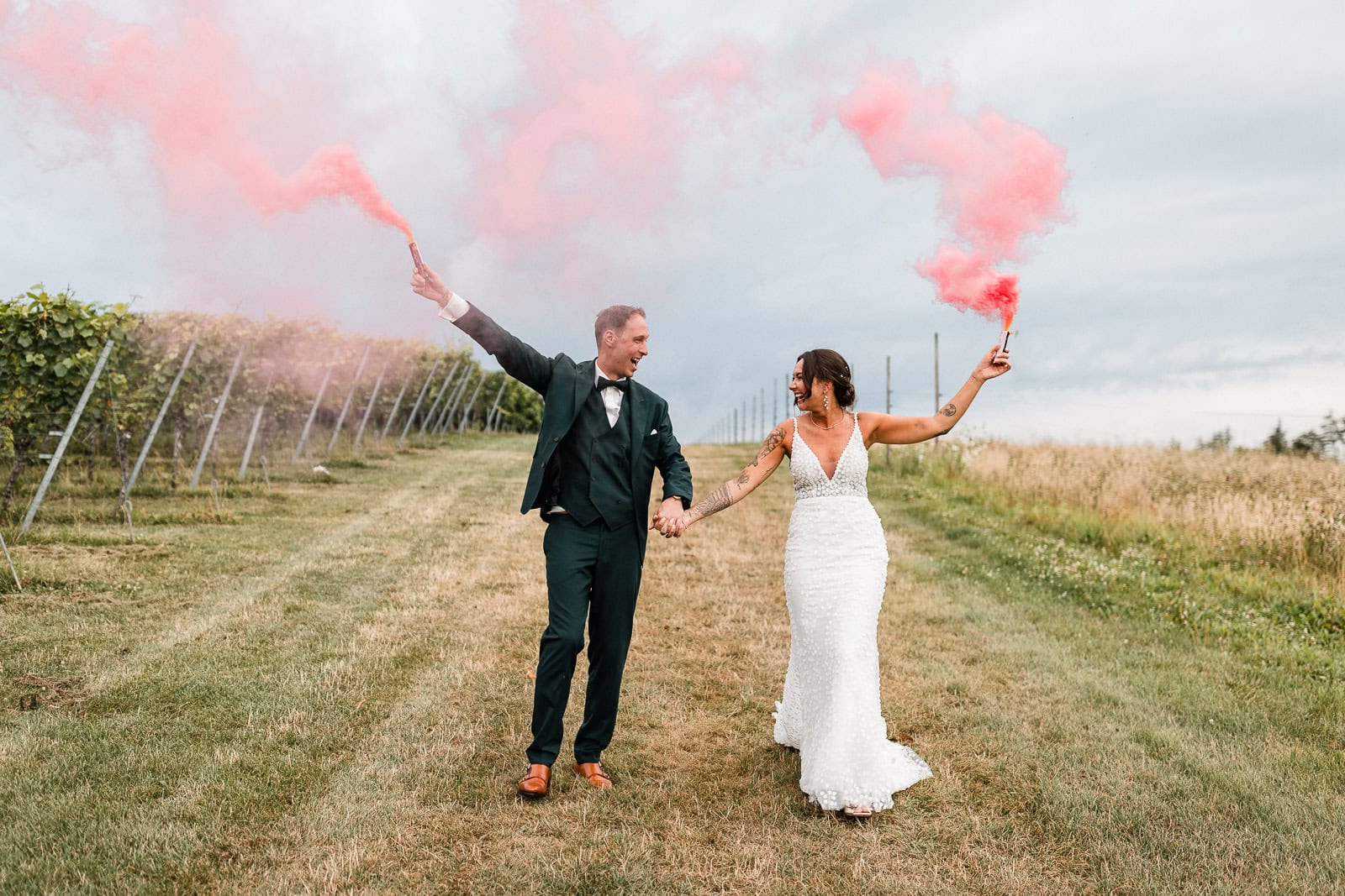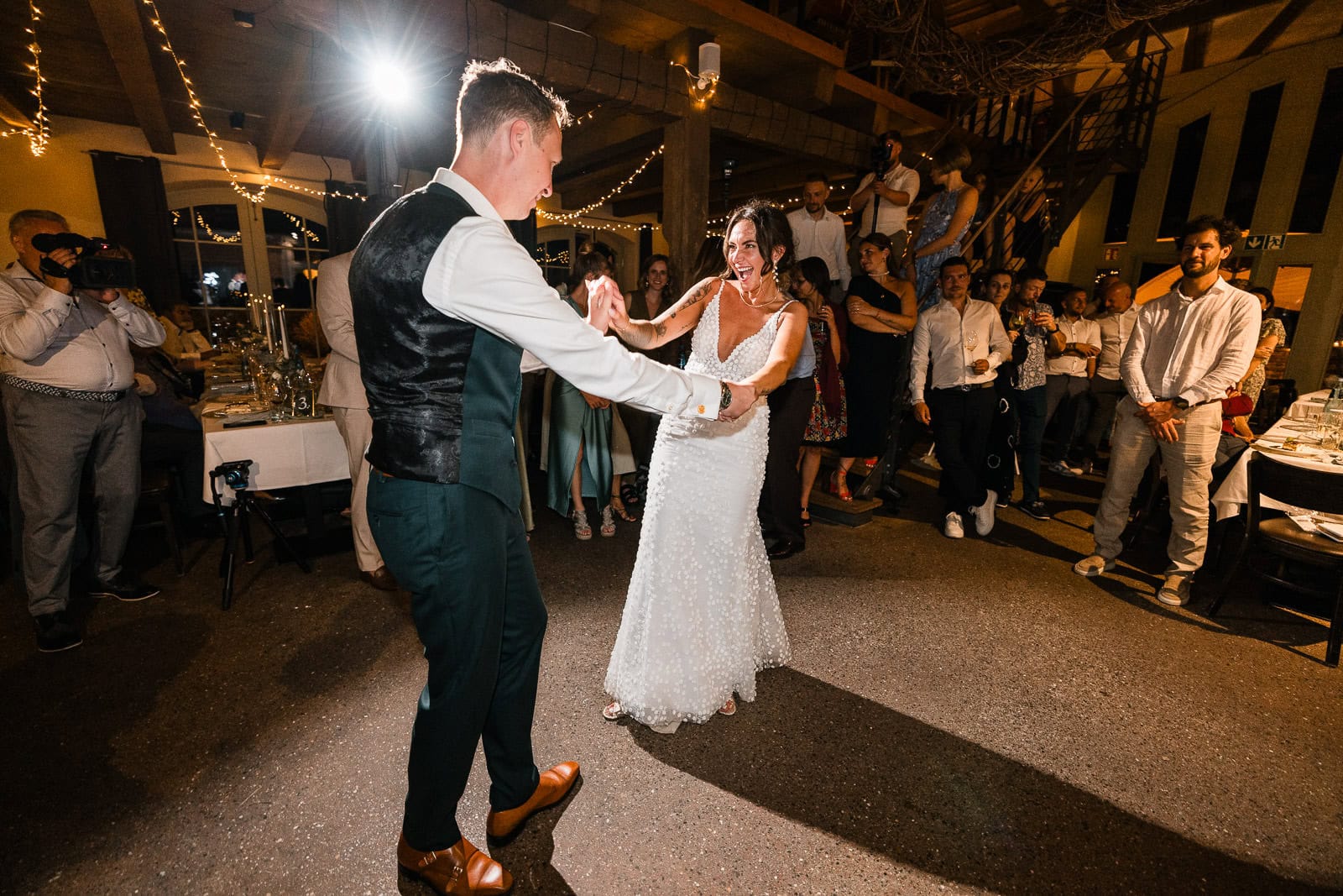 Was mir als Fotograf besonders in Erinnerung bleibt, ist die Echtheit dieses Tages. Nichts war gestellt – weder beim Paarshooting zwischen den Reben noch beim fröhlichen Auszug oder den spontanen Momenten zwischendurch. Marie und Steve haben ihren Tag so gelebt, wie er kam – mit Leichtigkeit, Humor und ganz viel Herz.