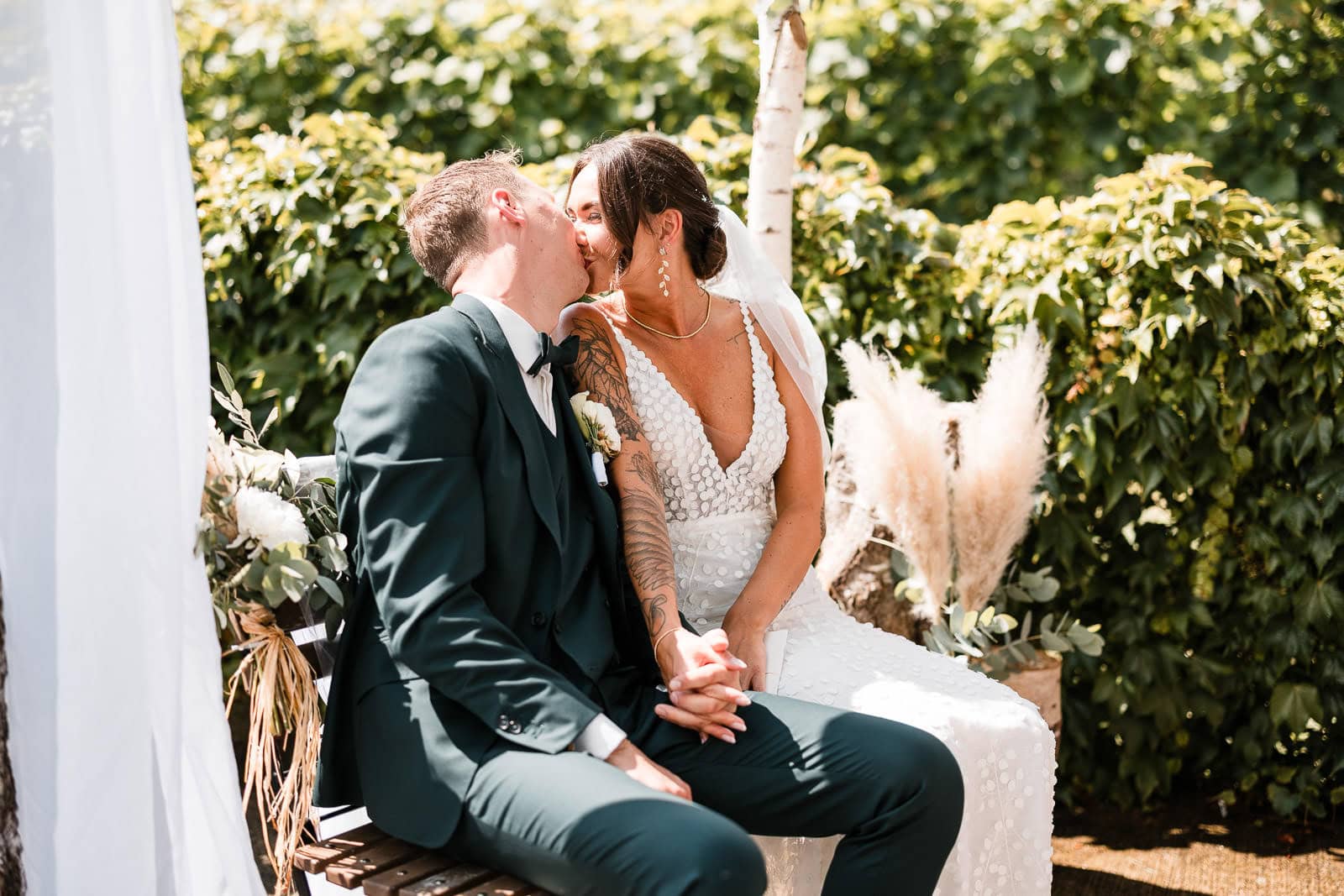 Traurednerin Stephanie Schoger von Zeremonien am See führte mit einer sehr persönlichen und authentischen Rede durch die Zeremonie. Es wurde gelacht, geweint und mitgefiebert – besonders in dem Moment, als Steve Maries Hand nahm und ihr einen liebevollen Kuss gab.