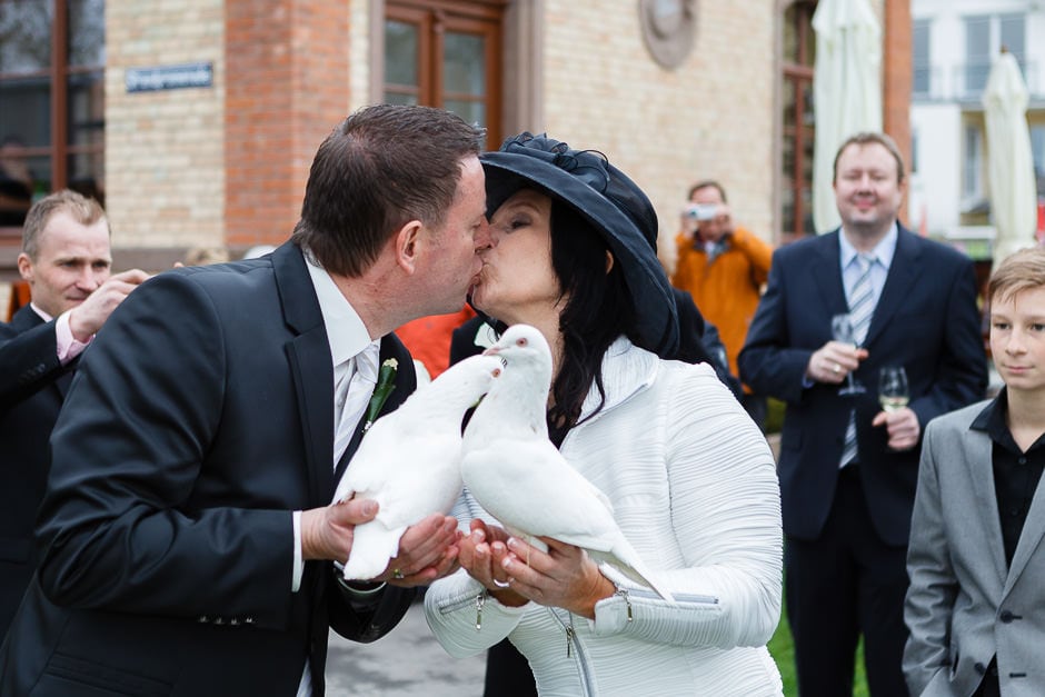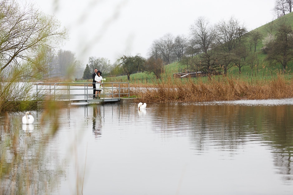 Als Petrus kurz den Wasserhahn zudrehte und es nur noch nieselte, nutzten wir die Gelegenheit und zogen los, um die Paarbilder zu machen. Rund um Uhldingen-Mühlhofen boten sich viele Locations an, um die Bilder mit dem Brautpaar festzuhalten. Die zwei haben sich trotz des leichten Regens nicht die Stimmung nehmen lassen und waren ein super schönes Paar. Anschließend fuhren wir nach Unteruhldigen, dort setzten wir dann das Shooting fort. Am See konnten wir weitere Bilder festhalten bevor es dann zum Sektempfang wieder nach Uhldingen-Mühlhofen ging. Mit guter Laune begaben wir uns gemeinsam, mit den geladenen Gästen, zum Standesamt, dort sprachen sich die beiden das Ja-Wort zu.